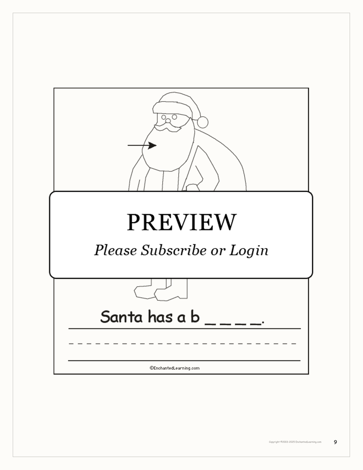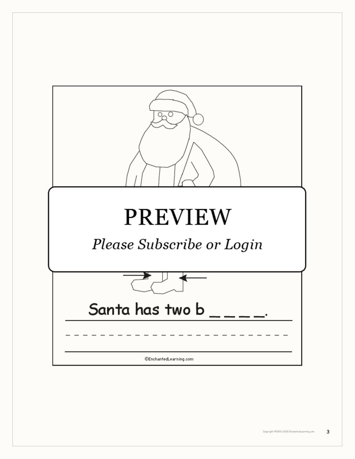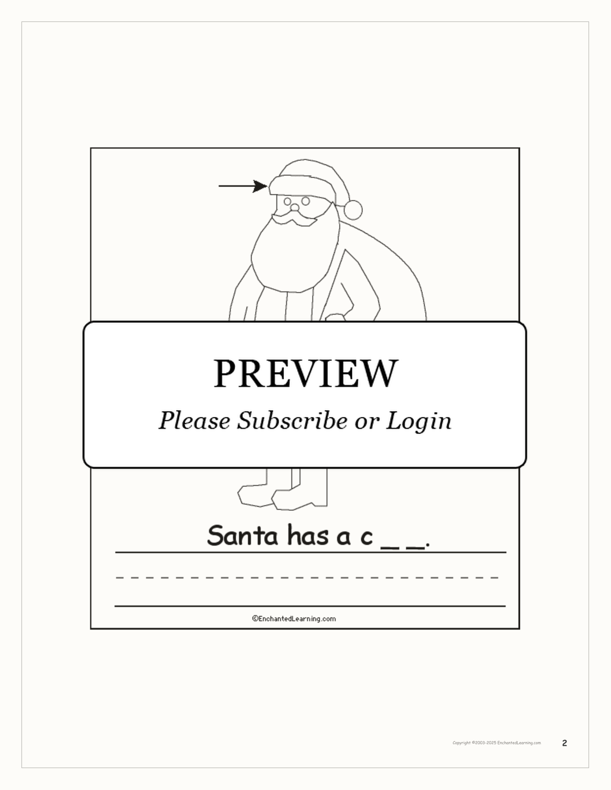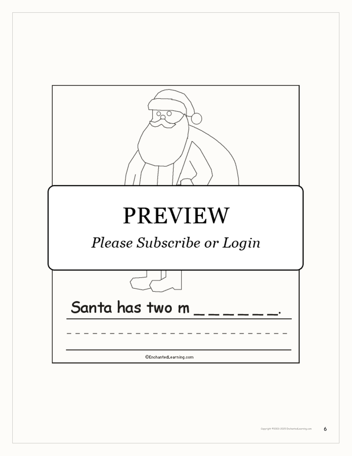 This is a short activity book about Santa to print, with pages to color, words to finish, and short phrases to copy.