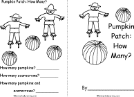 How Many Pumpkins? Printable Activity Book A short, printable book about the numbers from 1 to 10 for early readers, with pages for the student to cut out, items to count and color, and a short phrase to copy. |