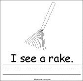 This is a short book about Fall (Autumn) to print for early readers, with pages for the student to color and short phrases to copy. The pages are: I see a… leaf, rake, corn, acorn, apple, scarecrow, haystack, pumpkin, pie, turkey, cornucopia, and web.