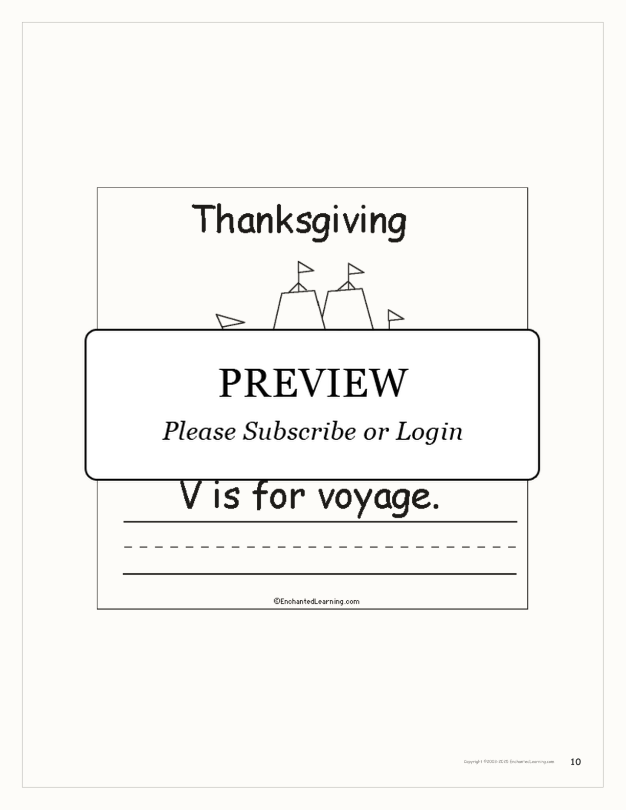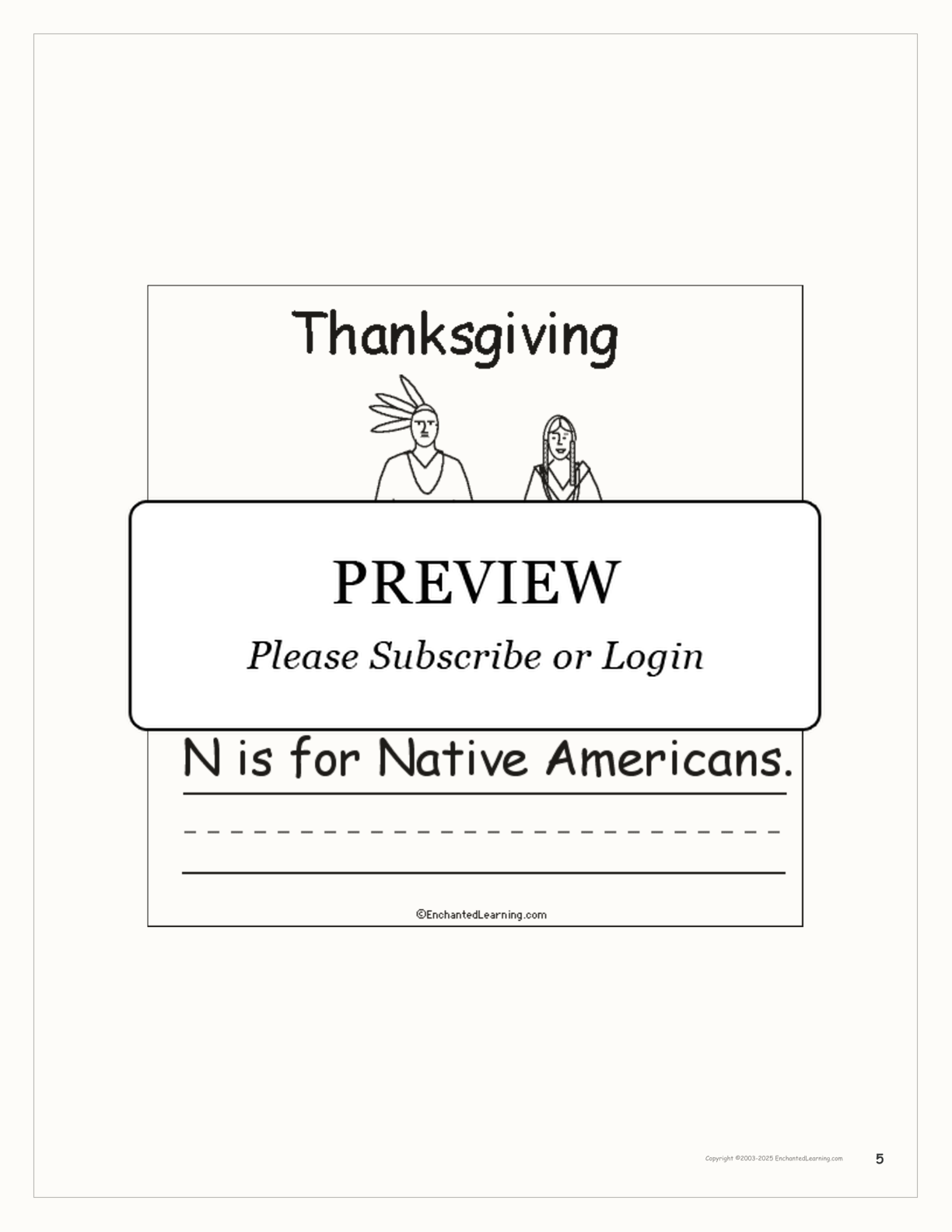 This is a short, printable book for early readers: it has pages for each of the letters in the word 'Thanksgiving'.