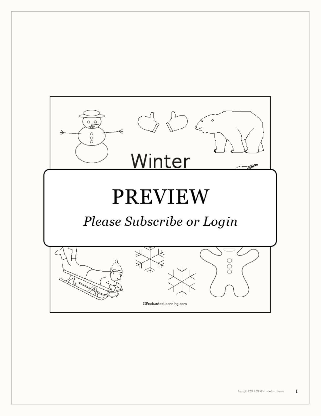 This is a short, printable activity book about winter for early readers. The book has pages for the student to cut out, activities to do (coloring, drawing, counting, finding first letters of words, etc.), and short phrases to copy.