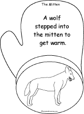 There are many versions of this old, Ukrainian folktale. Different versions have different forest animals taking refuge in a boy's lost mitten. All of the versions start with small animals entering the mitten, followed by larger and larger animals, until, unexpectedly, a small animal causes the animals to be ejected from the mitten when it splits open, explodes, or one of the animals has a big sneeze and ejects them all from the stretched-out mitten! Pick the pages you want to include in your own mitten book.