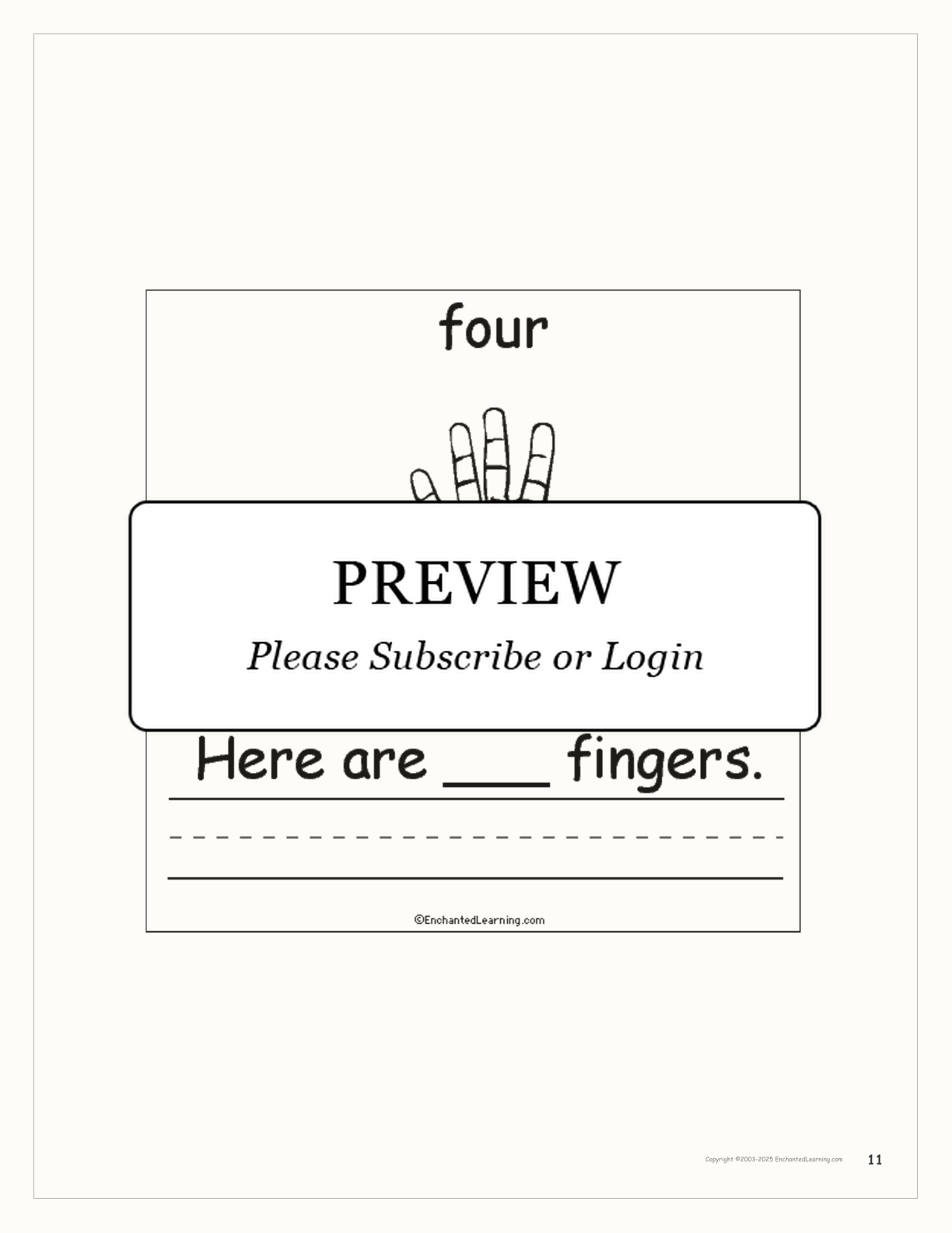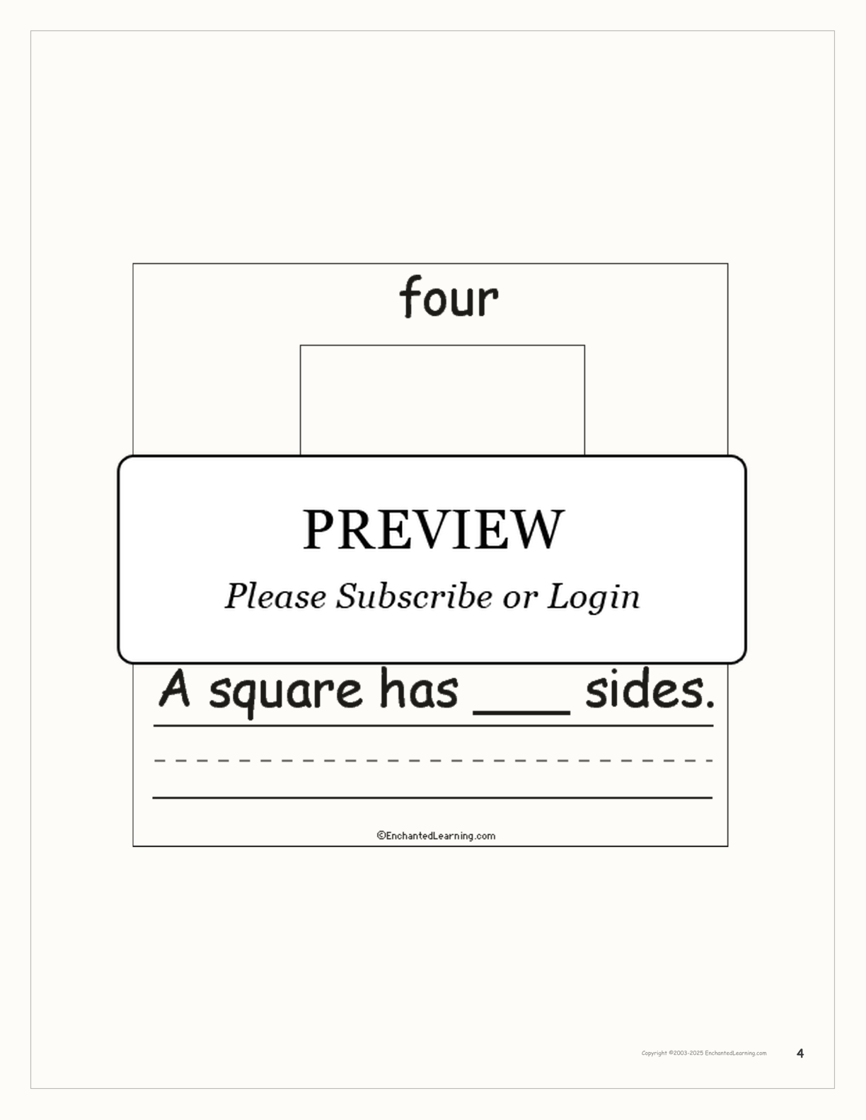 This is a short, printable book about the number four for early readers. The book has pages for the student to cut out, objects to color, and short phrases to write.
