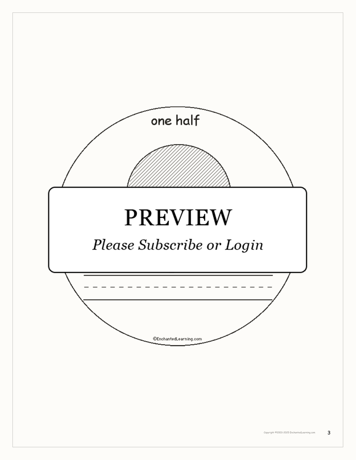 This is a short, printable book for early readers, about fractions, with pages for the student to cut out, items to color, and short phrases to copy.
