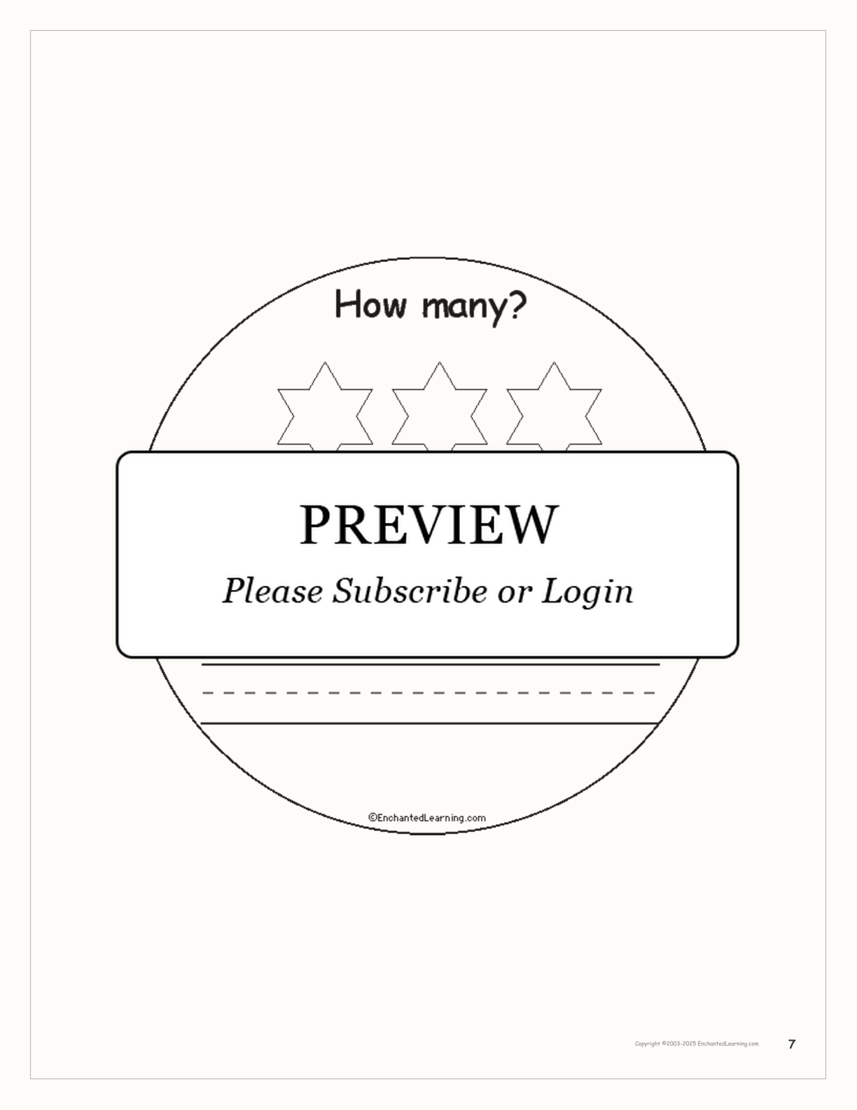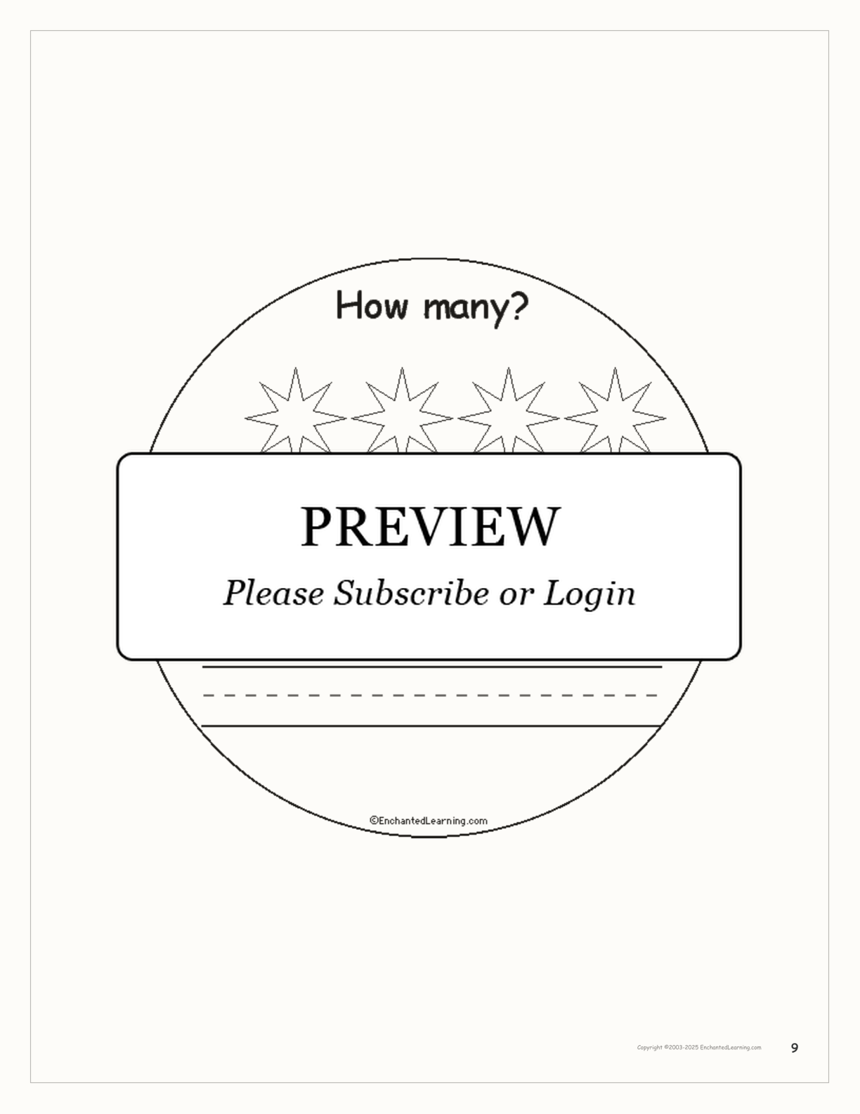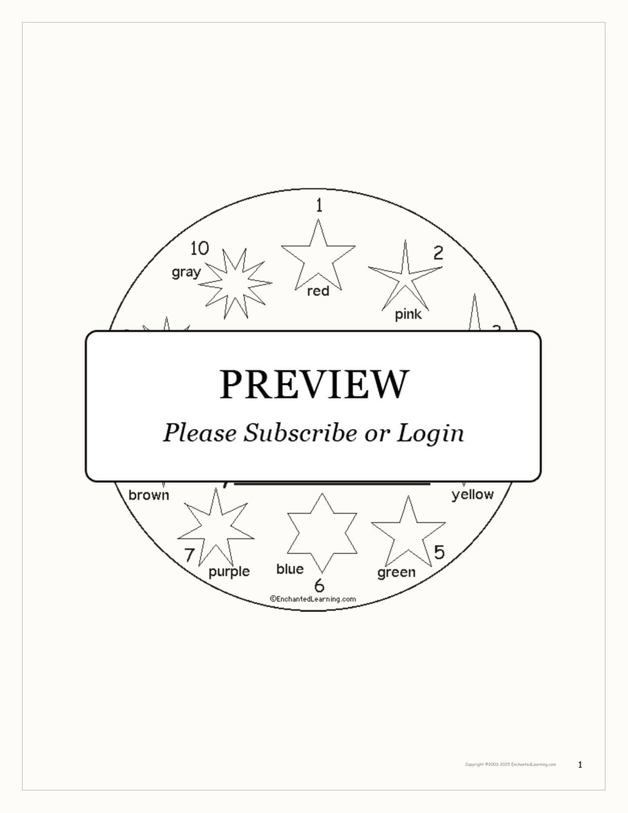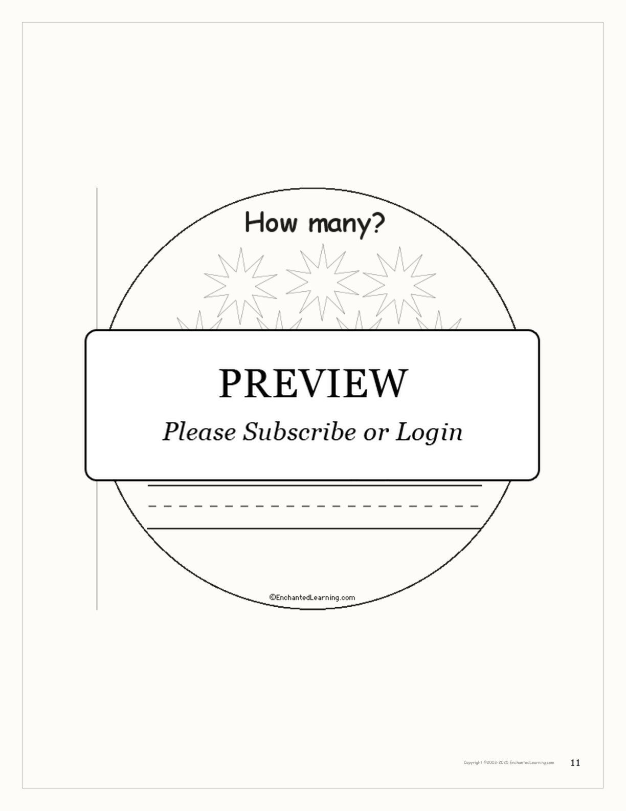 This is a short, printable book for early readers, about colorful stars and the numbers from 1 to 10, with pages for the student to cut out, items to count and color, and short phrases to copy.