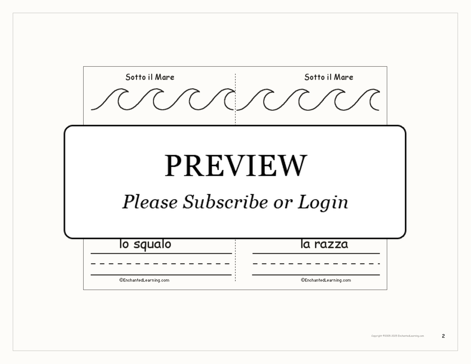 This is a short, printable book about sea animals in Italian for early readers. The book has pages for the student to cut out, read, and color, with animal names to write.