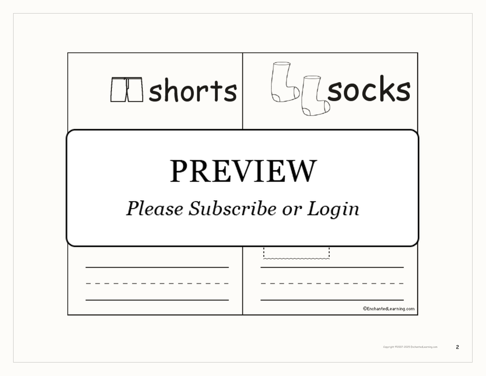 A tiny, printable book about simple words related to clothing — for early readers and writers.