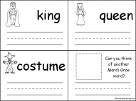 A tiny, printable book about simple words related to Mardi Gras -- for early readers and writers.