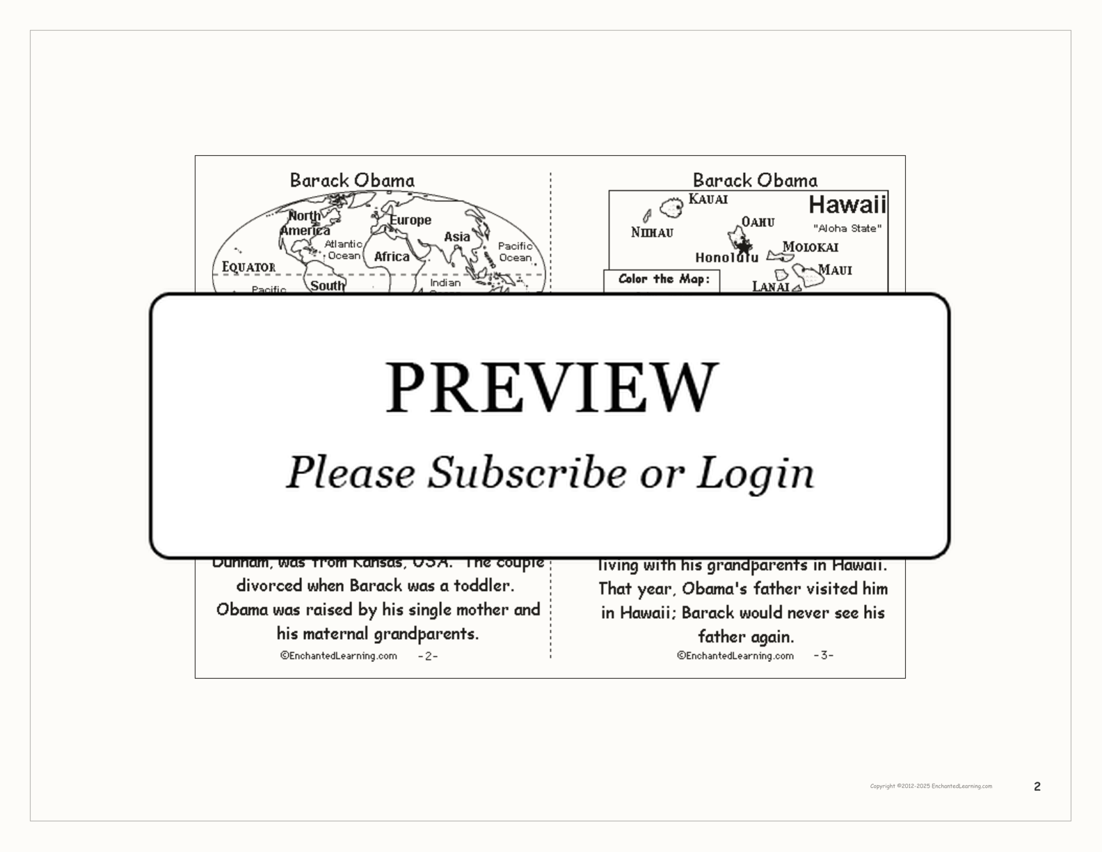This short printable book on Barack Obama is for fluent readers. Learn all about the 44th President of the USA, and complete an Obama timeline quiz..