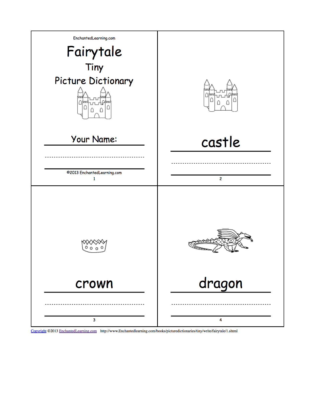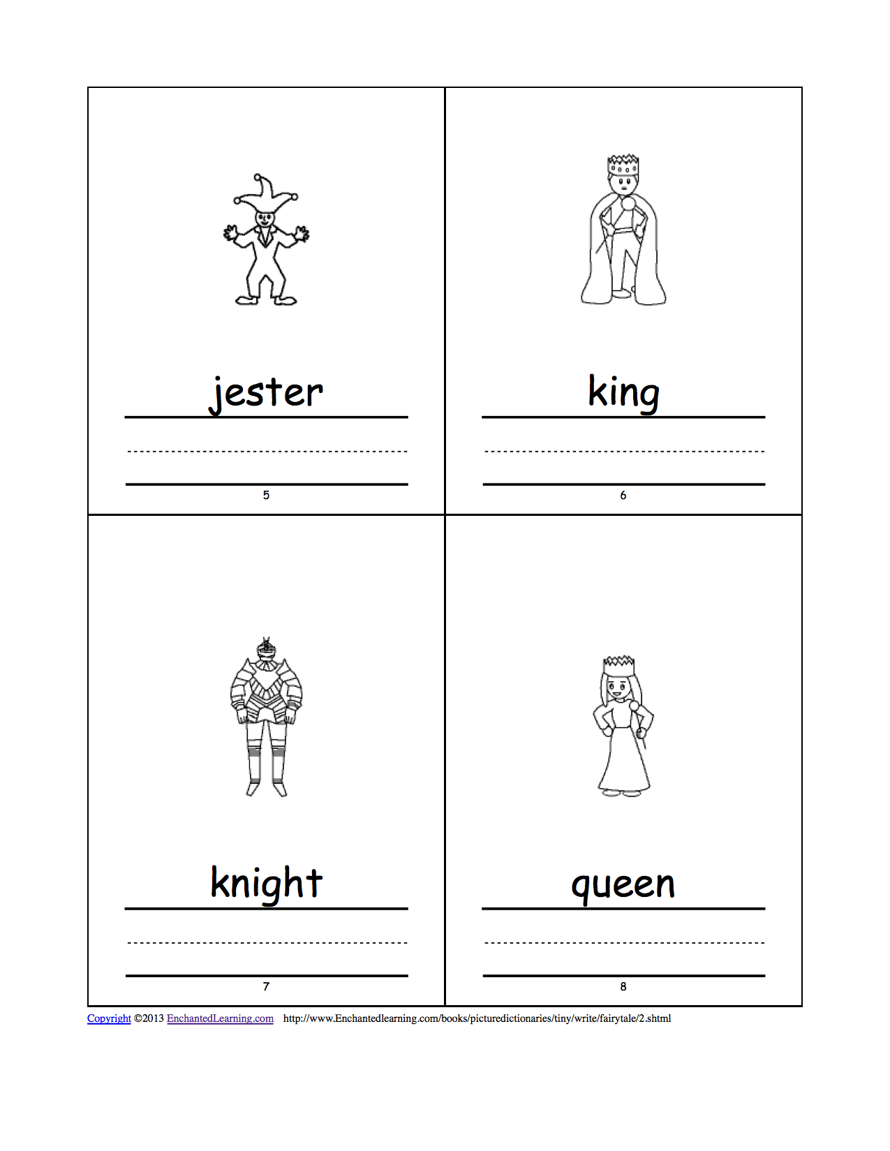 ![]() Pages 1-4 Words: castle, crown, dragon. |