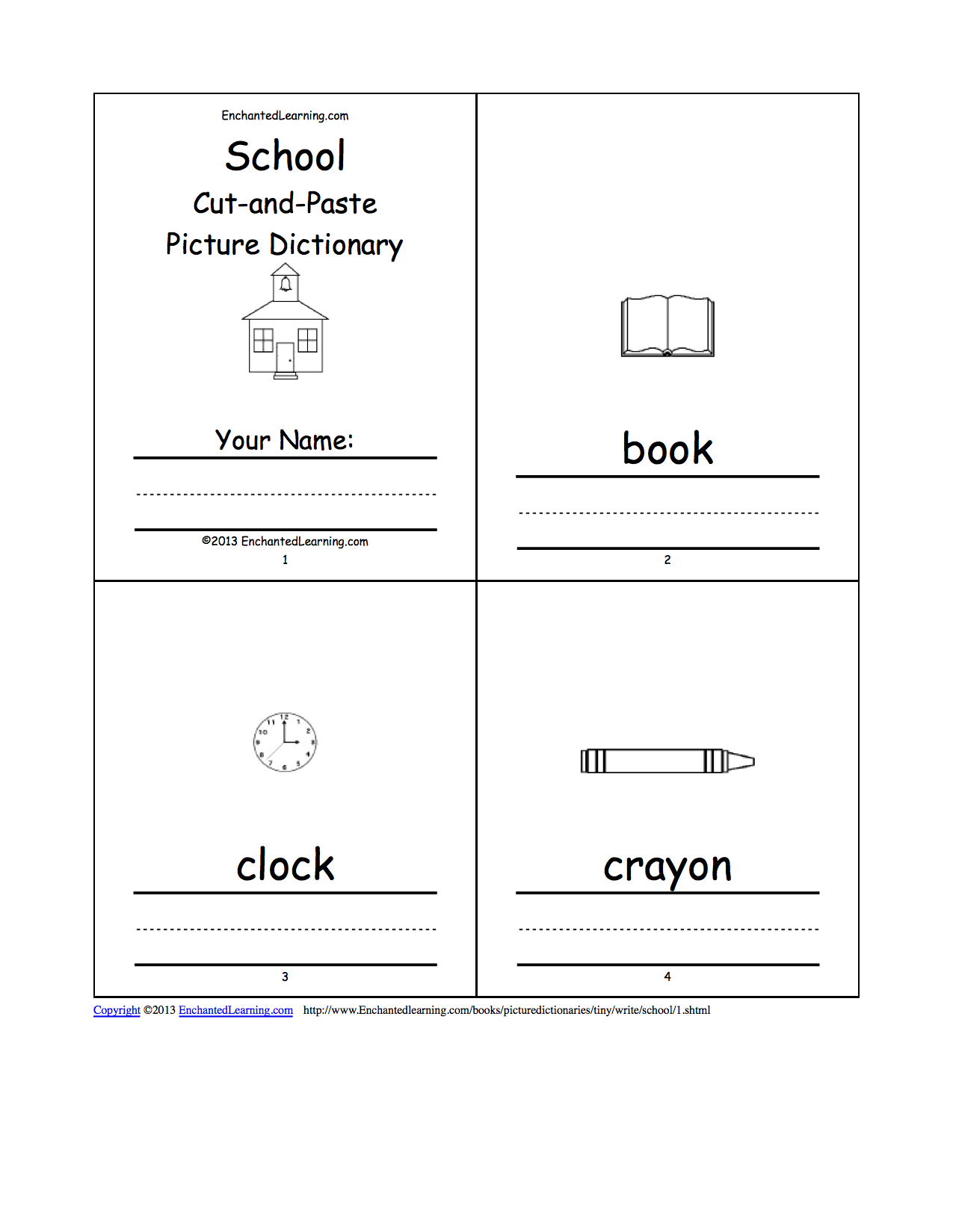![]() Pages 9-12 Words: ruler, scissors, stapler, and write another school word. |