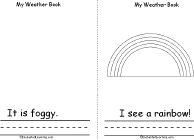 A short, printable weather book for early readers with pages to color and sentences to copy.