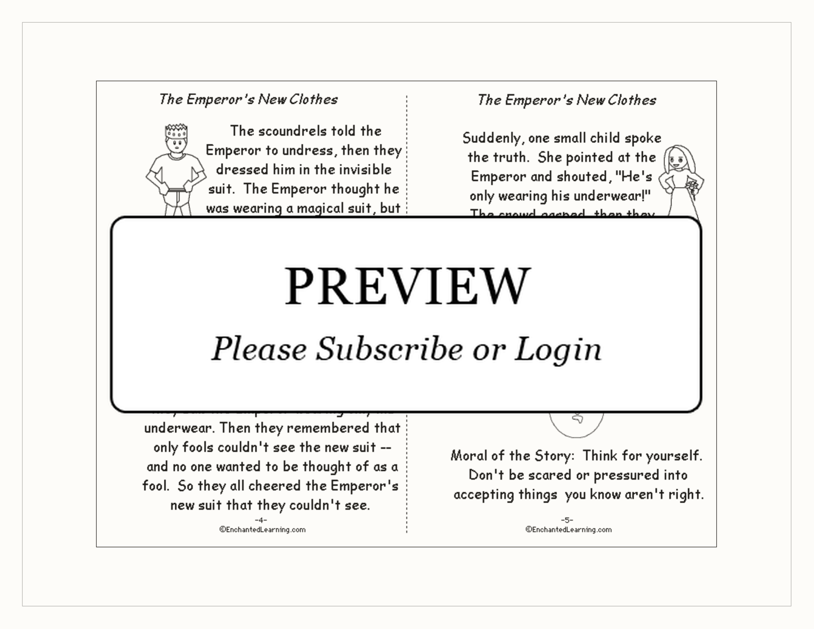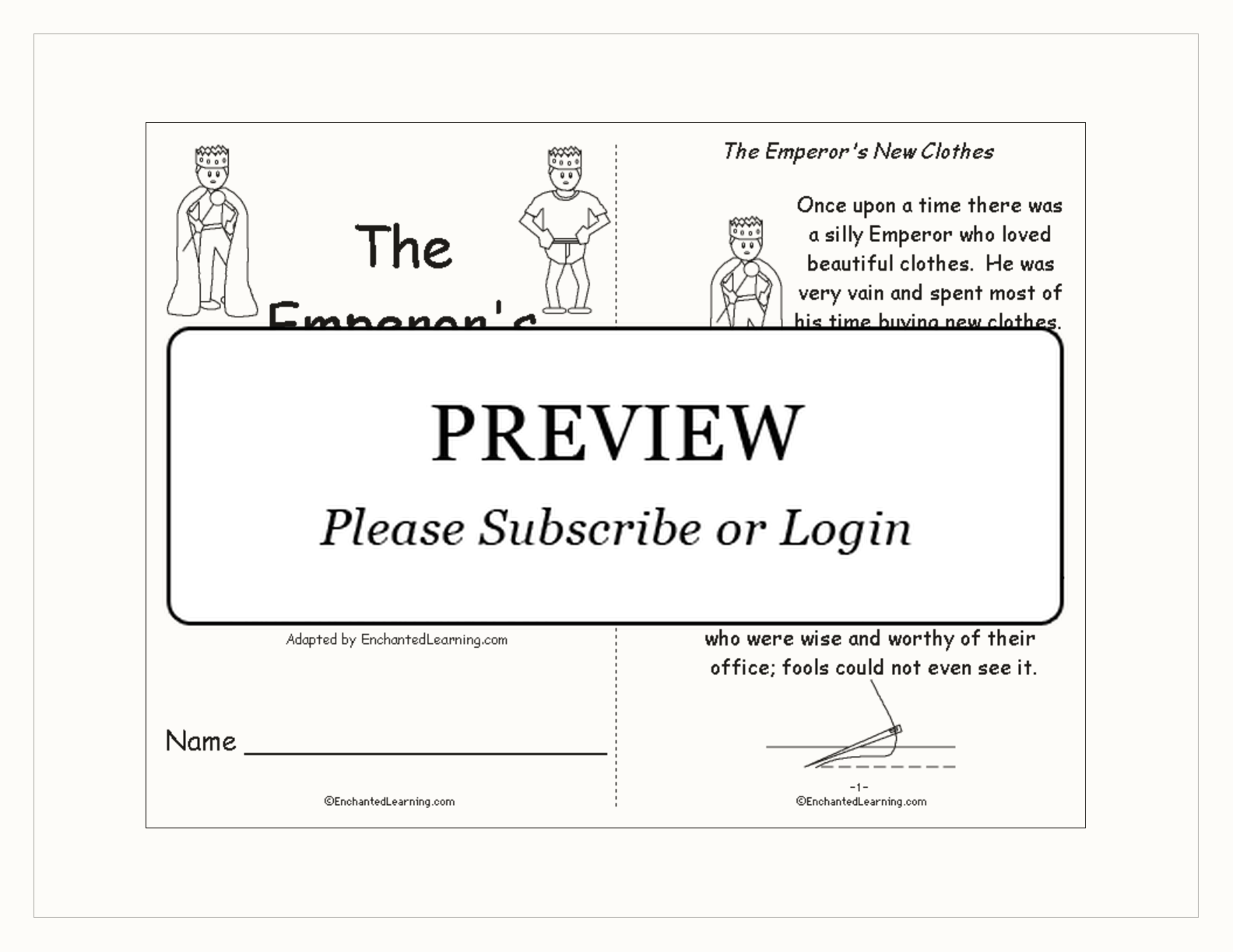 A printable book of the Hans Christian Andersen fairytale, 'The Emperor's New Clothes' — for early readers.
