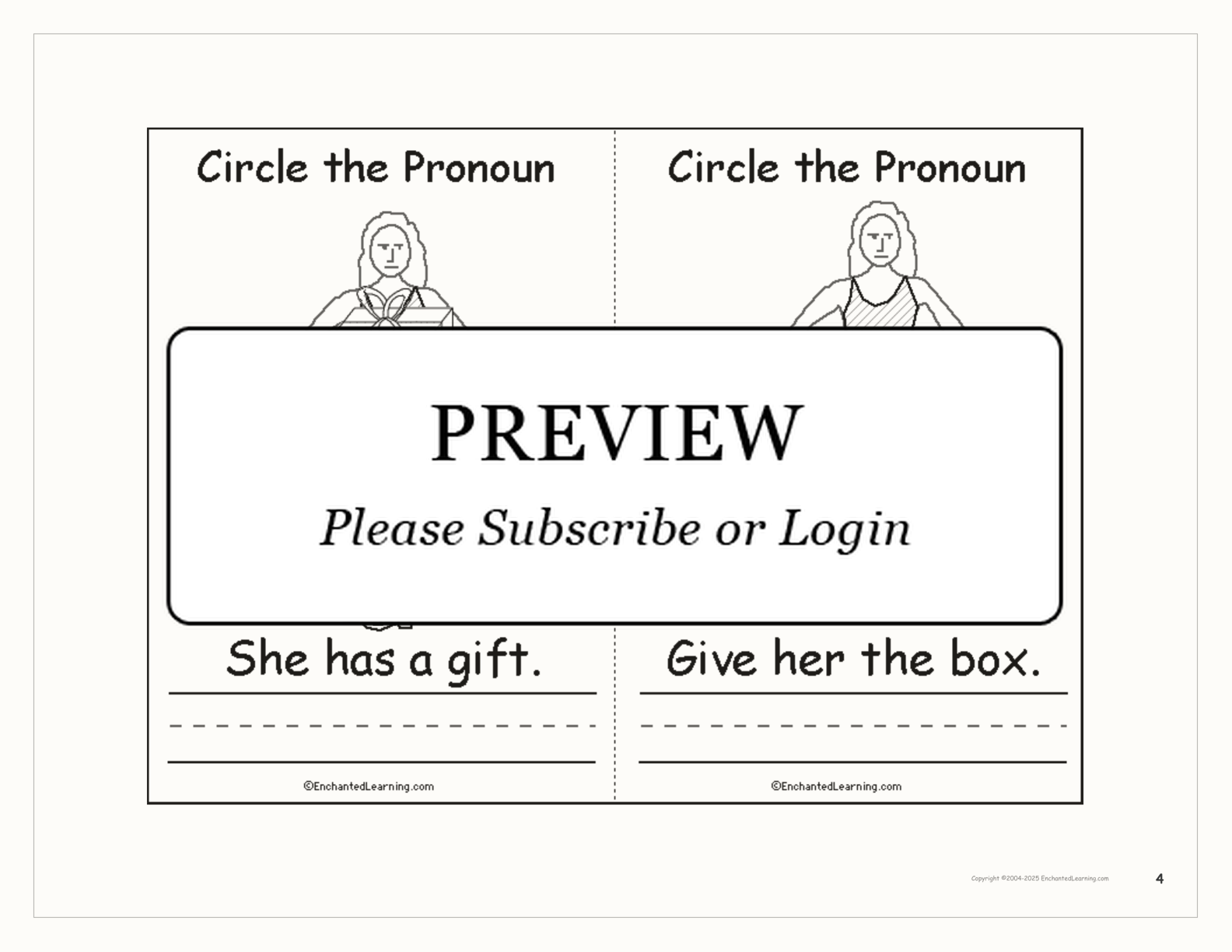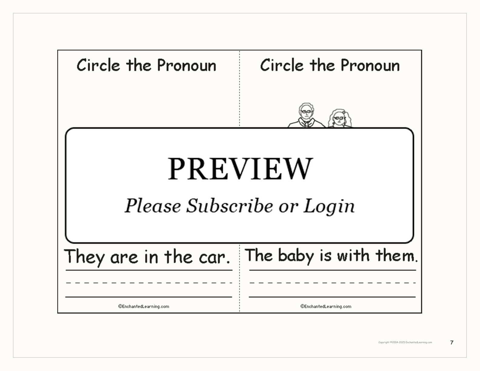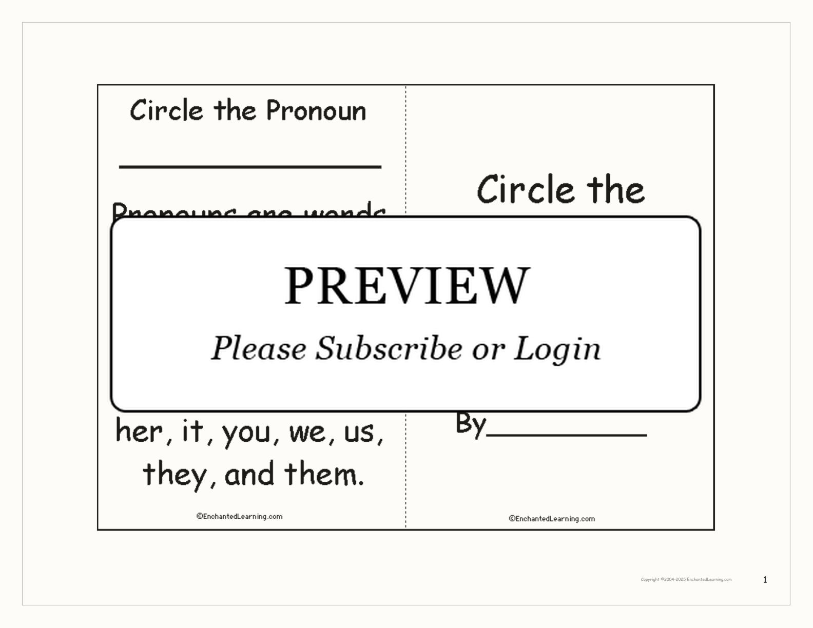 This is a short, printable book about circling pronouns, for early readers. The book has pages for the student to cut out, pronouns to find and circle, and a short phrase to copy.