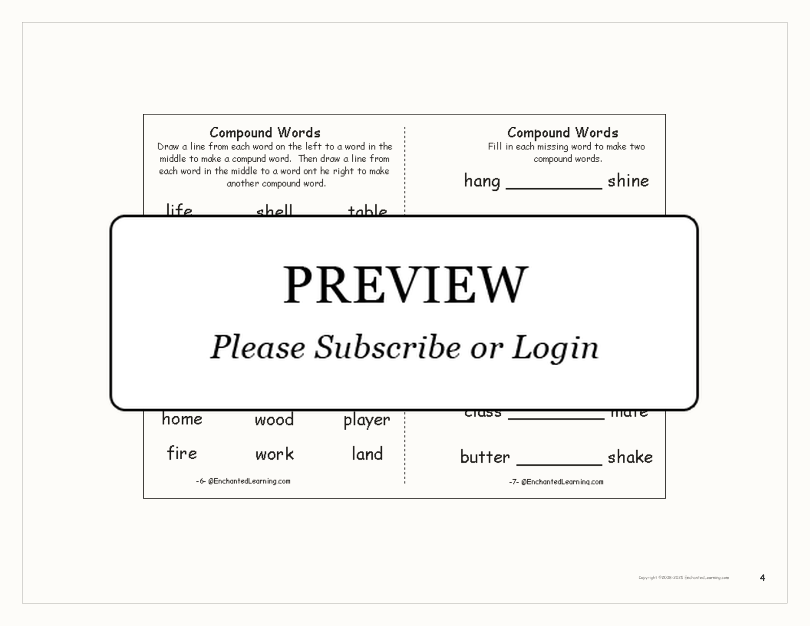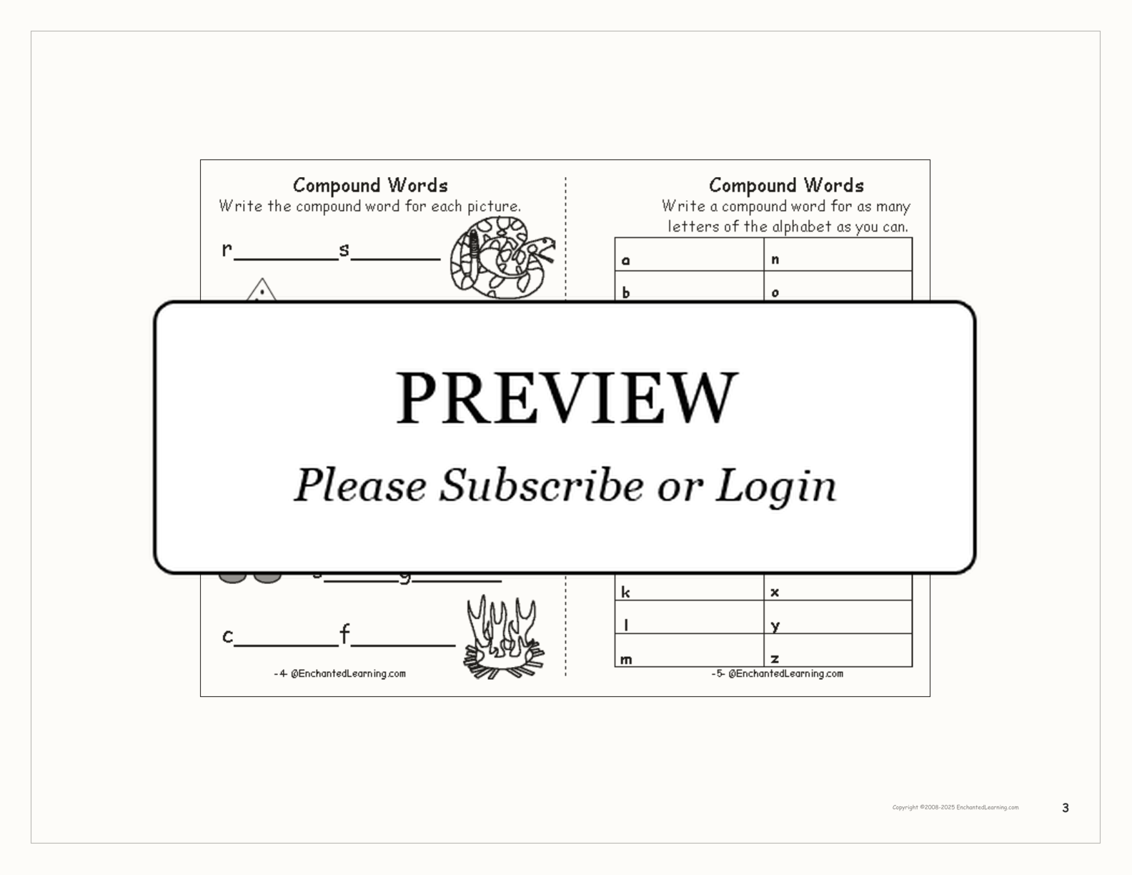 In this short, printable book, learn about compound words and do fill-in-the-blanks, matching, and spelling activities.