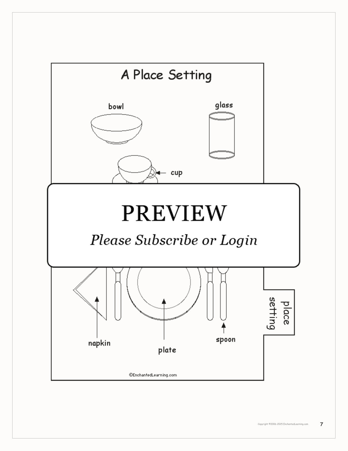 - Learn the words for plate, bowl, fork, knife, spoon, napkin, glass, cup, and saucer.