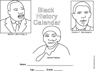 Site members can print out the pages of this black history calendar and then color the pages. To print a page, go to that page and then choose the Print command from the File menu.