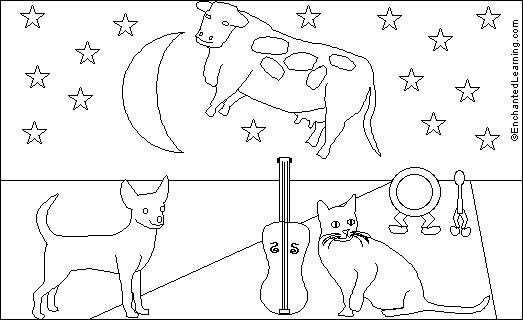 | EnchantedLearning.com Hey Diddle Diddle, the Cat and the Fiddle | Paint Rhymes Online Rhyme Printouts |