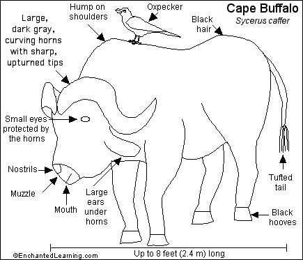 | EnchantedLearning.com More Mammal Printouts | Cape Buffalo | Animal Printouts Label Me! Printouts |