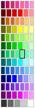 Click on a region in the picture to color it in with the selected color. Click on a color swatch in the palette to select a new color. The currently selected color in the palette is indicated by a black rectangle drawn around it. When you click, the point that you're clicking on is at the tip of the arrow or the tip of the pointing finger.