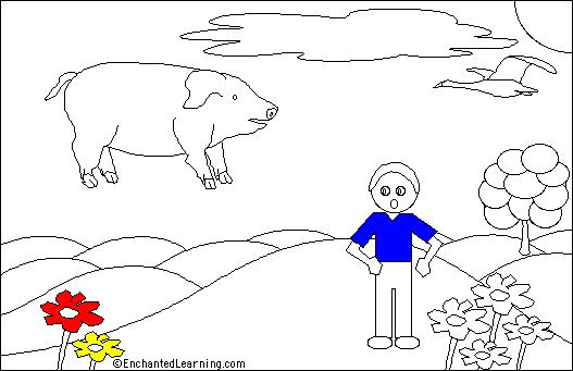 | EnchantedLearning.com Flying Pig | Paint Rhymes Online Rhyme Printouts |