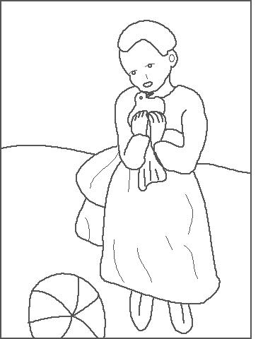 Click on a region in the picture to color it in with the selected color. Click on a color swatch in the palette to select a new color. The currently selected color in the palette is indicated by a black rectangle drawn around it. When you click, the point that you're clicking on is at the tip of the arrow or the tip of the pointing finger.