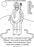 St. Patrick, Snakes Color St. Patrick and the snakes by number using the numbers from 1 to 10. |