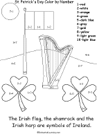 Flag, Shamrock, Harp Color the flag, shamrock, and harp by number using the numbers from 1 to 10. |