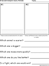 Draw and Compare Scary Animals Draw two scary animals and then answer simple questions comparing them, for example, "Which animal is scarier?" |