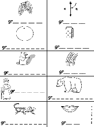 Fill in Missing Letters in Words Starting With Consonant Blends and Digraphs: GR. A printout about consonant blends for early readers: grapes, graph, grapefruit, grater, groundhog, grass, grandma, grizzly bear, grasshopper, grin.
