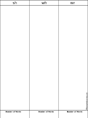 Think of and write words that start with sh, wh, and wr. Then add up how many you have of each.