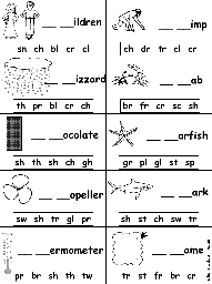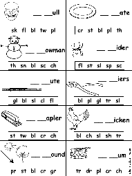 In these worksheets, students fill in the blank letters in words using different consonant blends.