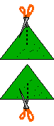 Cut a slit in each of the two triangles. Each slit should go halfway through the triangle; one goes throught the top of a triangle, the other goes throught the bottom of the triangle.