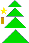 You will need to cut out a four green triangles (the boughs of the tree), a small brown rectangle (the tree trunk) and a yellow star (for the top of the tree).