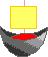 | Push a toothpick through the sail in two places (perpendicular to the other toothpick). |