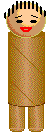 Cover the body and legs with pieces of construction paper, felt, and/or fabric. Glue them to the doll (hot glue works well with felt and fabric – tape or glue is better for construction paper).