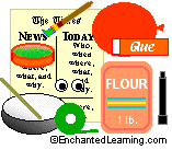 Papier-Mâché Glue: Make a simple, thin glue from flour and water. Mix 1/2 cup of flour into 1/2 cup of water until the mixture is thin and runny. Stir into 2 cups of boiling water (the heating gives the glue a nice consistency, but is not necessary). Simmer for about 3 minutes, then cool.