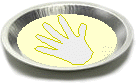 | This is a messy craft - wear old clothes and work outside if possible. Have an adult mix the plaster of Paris. Before starting, collect a large container to mix the plaster in and a wide container (like an aluminum pie plate or a plastic lid) to mold the handprint in. |