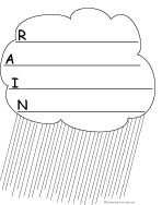 Write adjectives describing rain in and around the rain and clouds. Or go to a pdf of the worksheet.