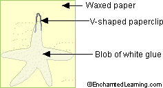Fold a paper clip into a “V” shape. Put the ends of a paper clip into the glue at the end of one arm of the starfish.