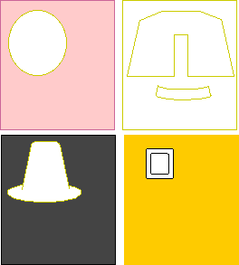 Trace the hat on black construction paper. Trace the face on pink construction paper. Trace the collar and hat band on white construction paper. Trace the buckle on yellow construction paper. Cut out the pieces.