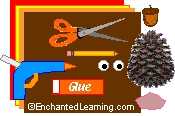 This cute turkey is made from a pine cone, an acorn, and construction paper. It makes a great Thanksgiving table decoration.