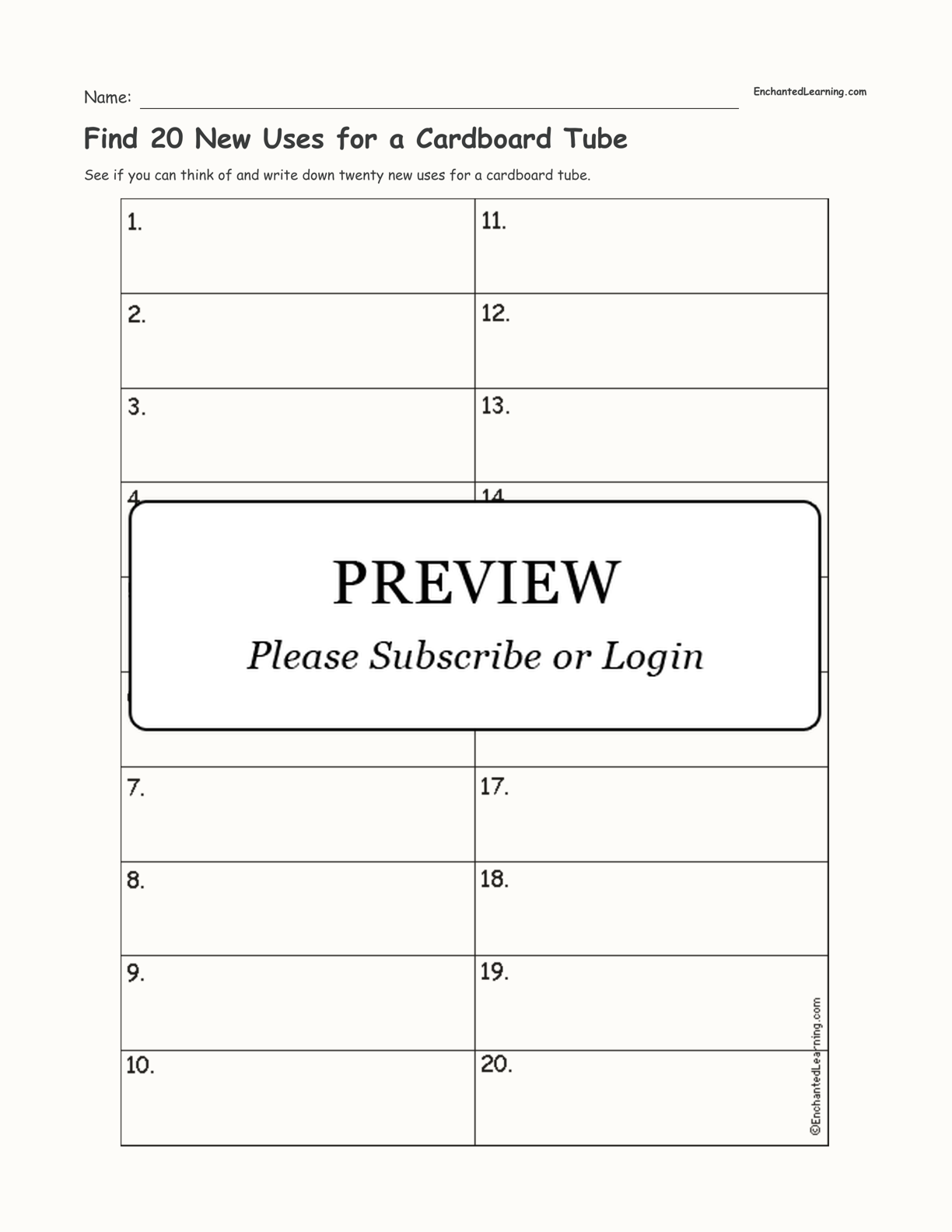 See if you can think of and write down twenty new uses for a cardboard tube.
