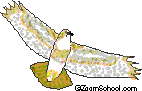 The eagle is a large bird of prey. It has a hooked bill and sharp talons.