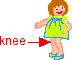 The knee is where the leg bends. It it between the lower leg and the upper leg (the thigh).