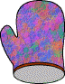 An oven mitt protects your hand when you put things in or out of an oven.