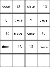 Spanish Number Dominoes 7 to 13 Page 2 Ten tiles. |