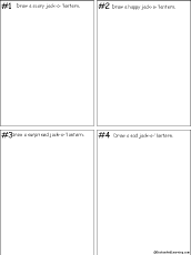 Draw Four Jack-o'-lanterns Draw four jack-o'-lanterns. Draw a scary jack-o'-lantern, a happy jack-o'-lantern, a surprised jack-o'-lantern, and a sad jack-o'-lantern. |