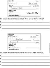 | What's Wrong With the Checks? #3 - On this printable worksheet, the student finds the mistakes made on two checks. |