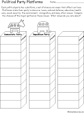 Compare the platforms of the political parties, noting their stances on issues such as taxes, national defense, education, health care, social security, the environment, immigration, etc. You can use the political party’s websites to determine their platforms. Members can go to a pdf version of the worksheet.